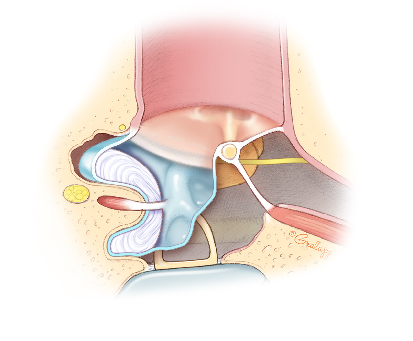 Dr. Jackler and Ms. Gralapp retain copyright for all of their original illustrations which appear in this online atlas. We encourage use of our illustrations for educational purposes, but copyright permission should be sought before publication or commercial use. To request permission for publication or commercial use please contact Christine Gralapp (eyeart@chrisgralapp.com, http