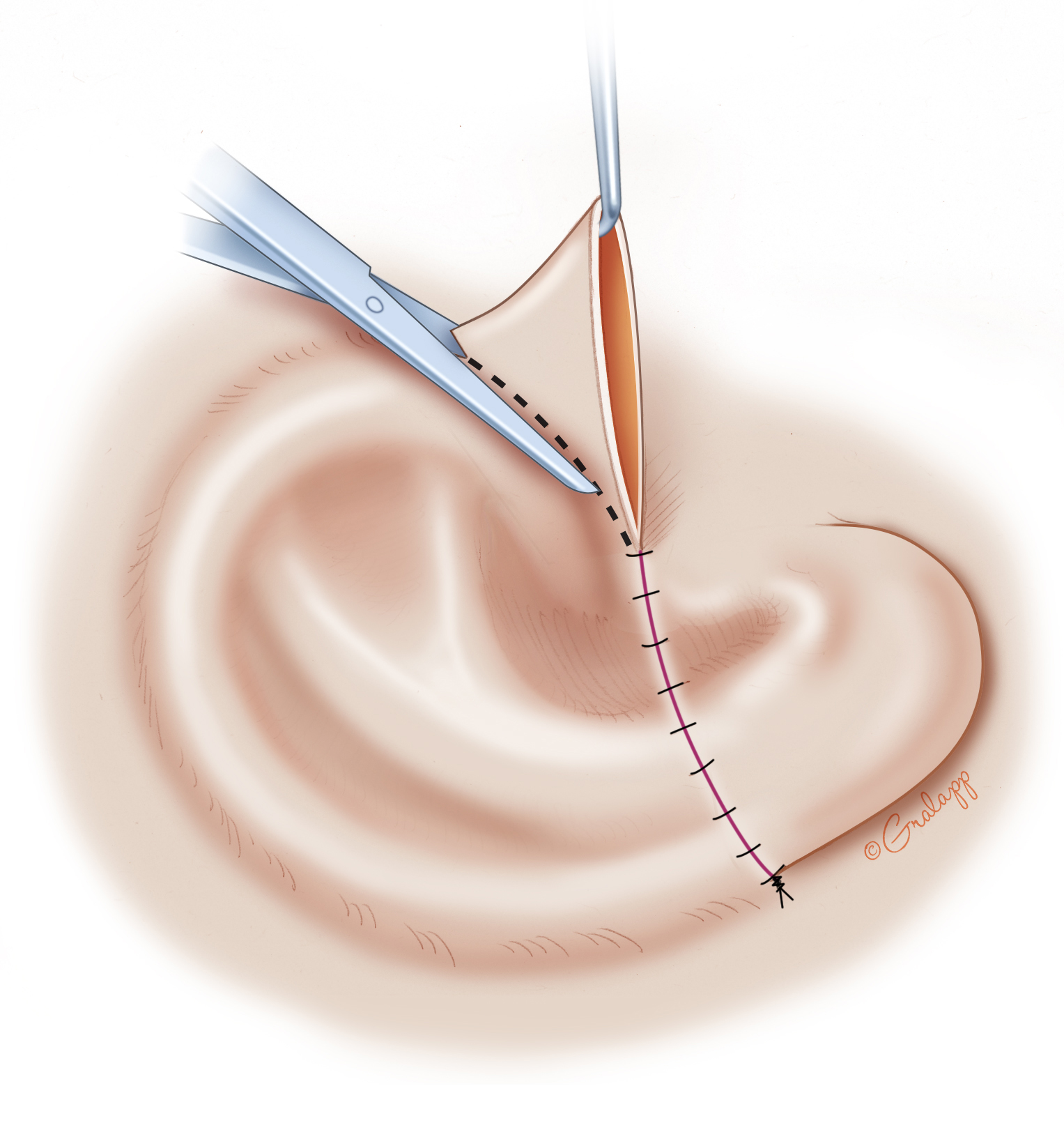 Dr. Jackler and Ms. Gralapp retain copyright for all of their original illustrations which appear in this online atlas. We encourage use of our illustrations for educational purposes, but copyright permission should be sought before publication or commercial use. To request permission for publication or commercial use please contact Christine Gralapp (eyeart@chrisgralapp.com, http