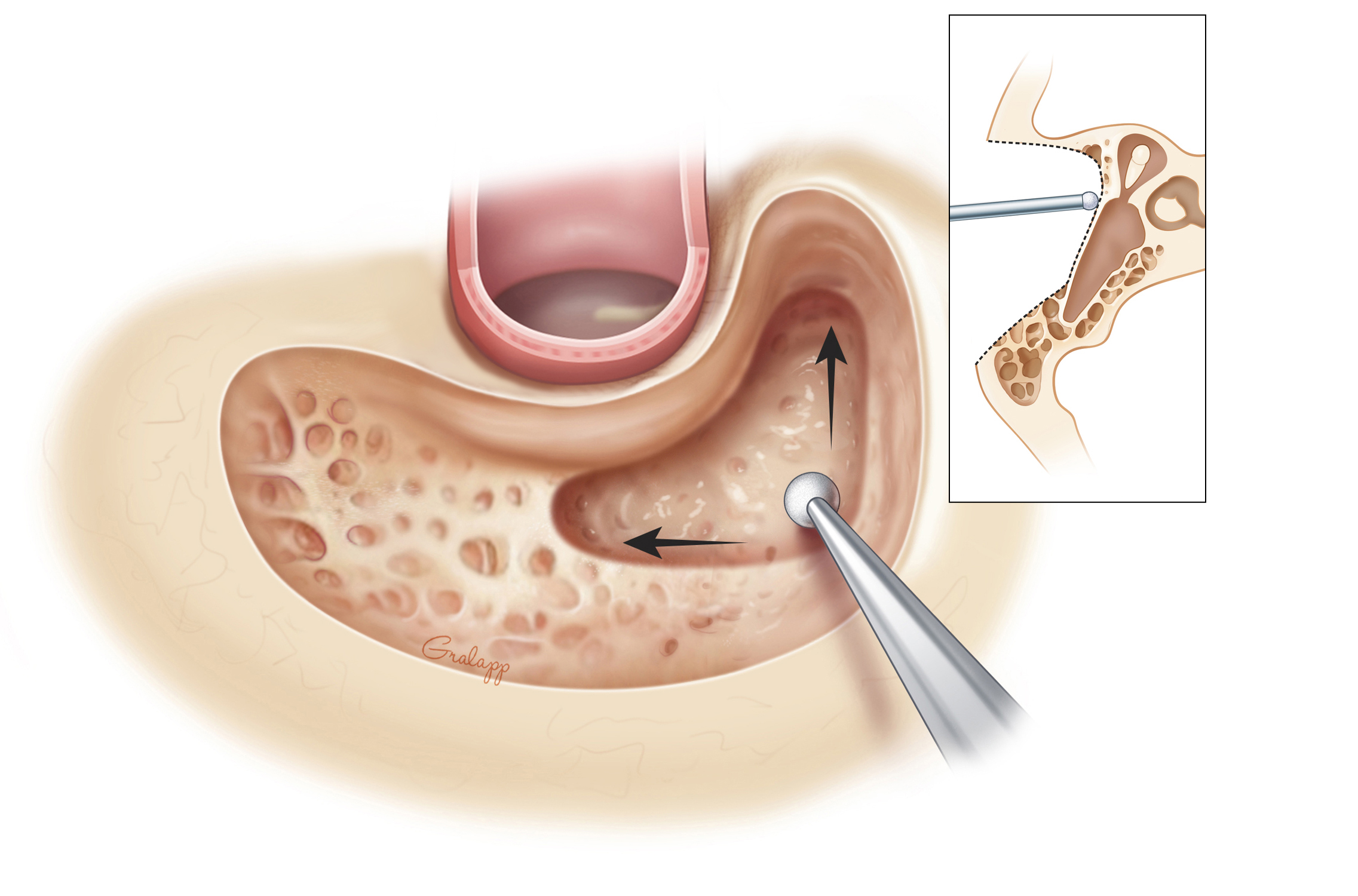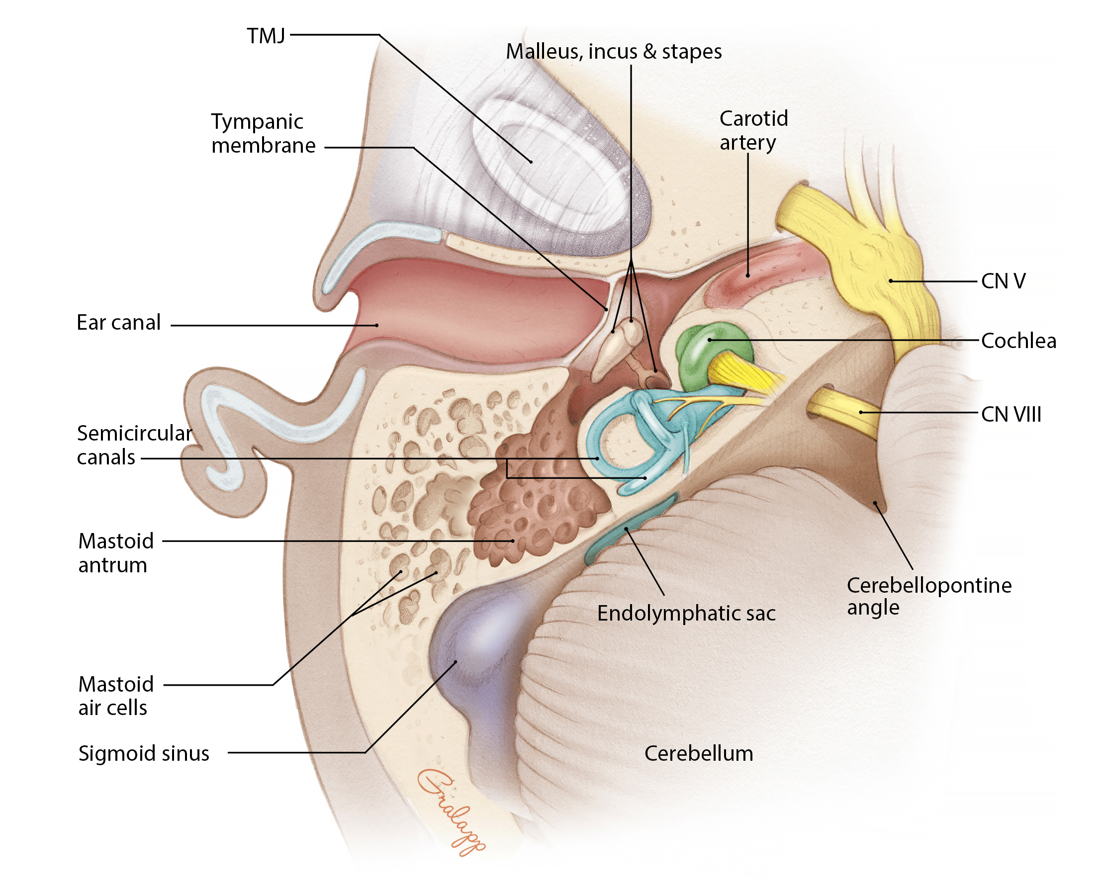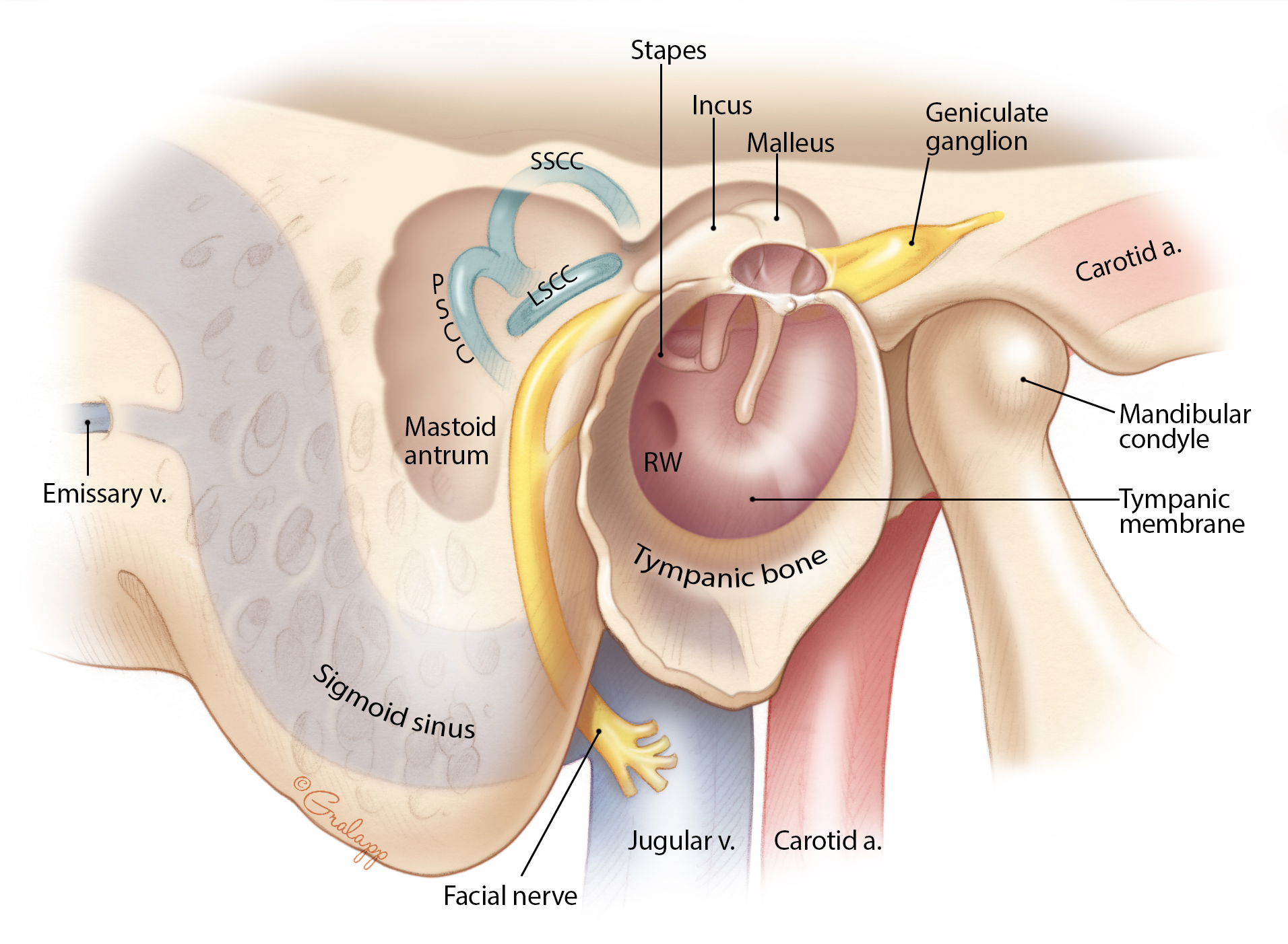 Dr. Jackler and Ms. Gralapp retain copyright for all of their original illustrations which appear in this online atlas. We encourage use of our illustrations for educational purposes, but copyright permission should be sought before publication or commercial use. To request permission for publication or commercial use please contact Christine Gralapp (eyeart@chrisgralapp.com, http