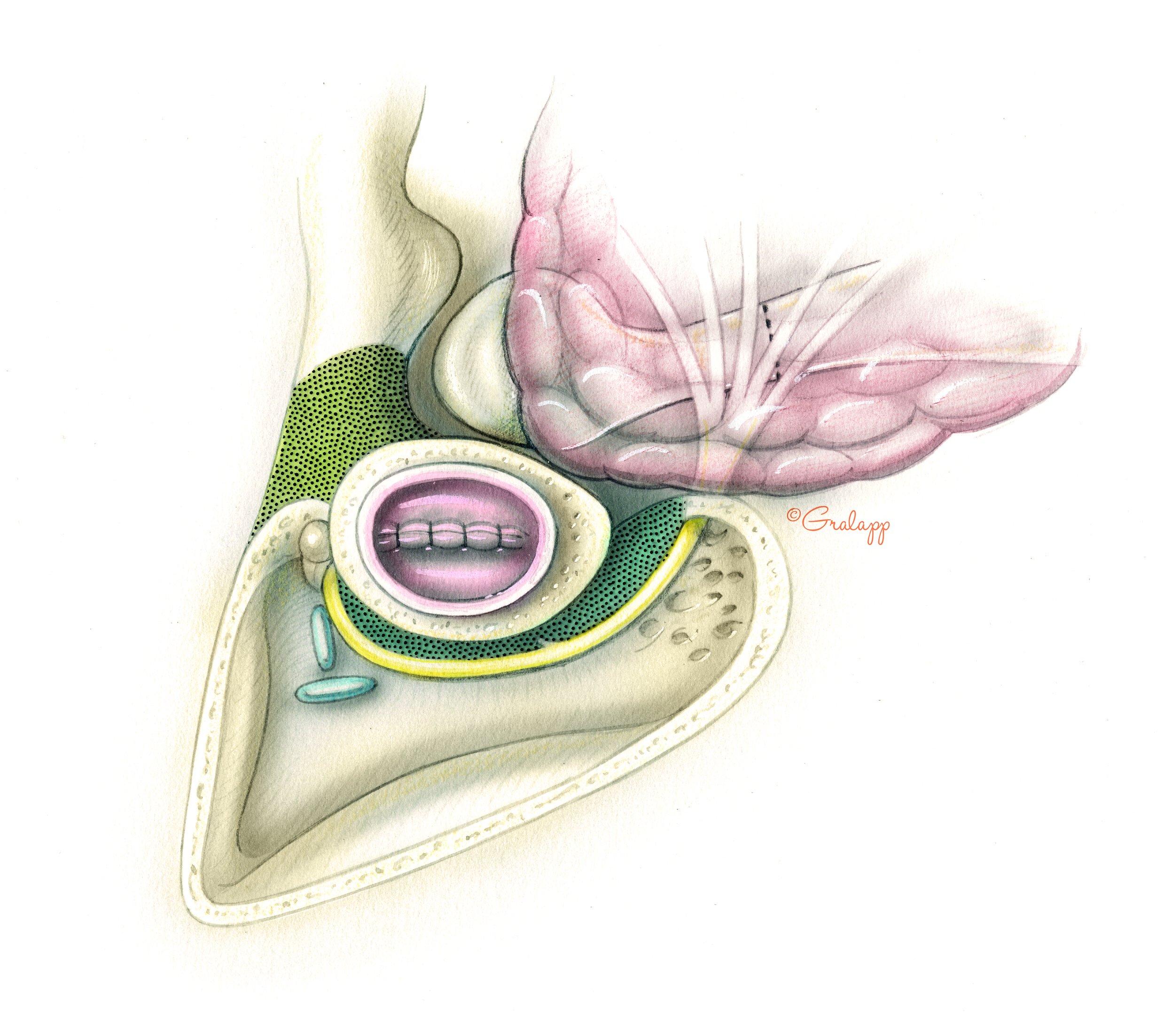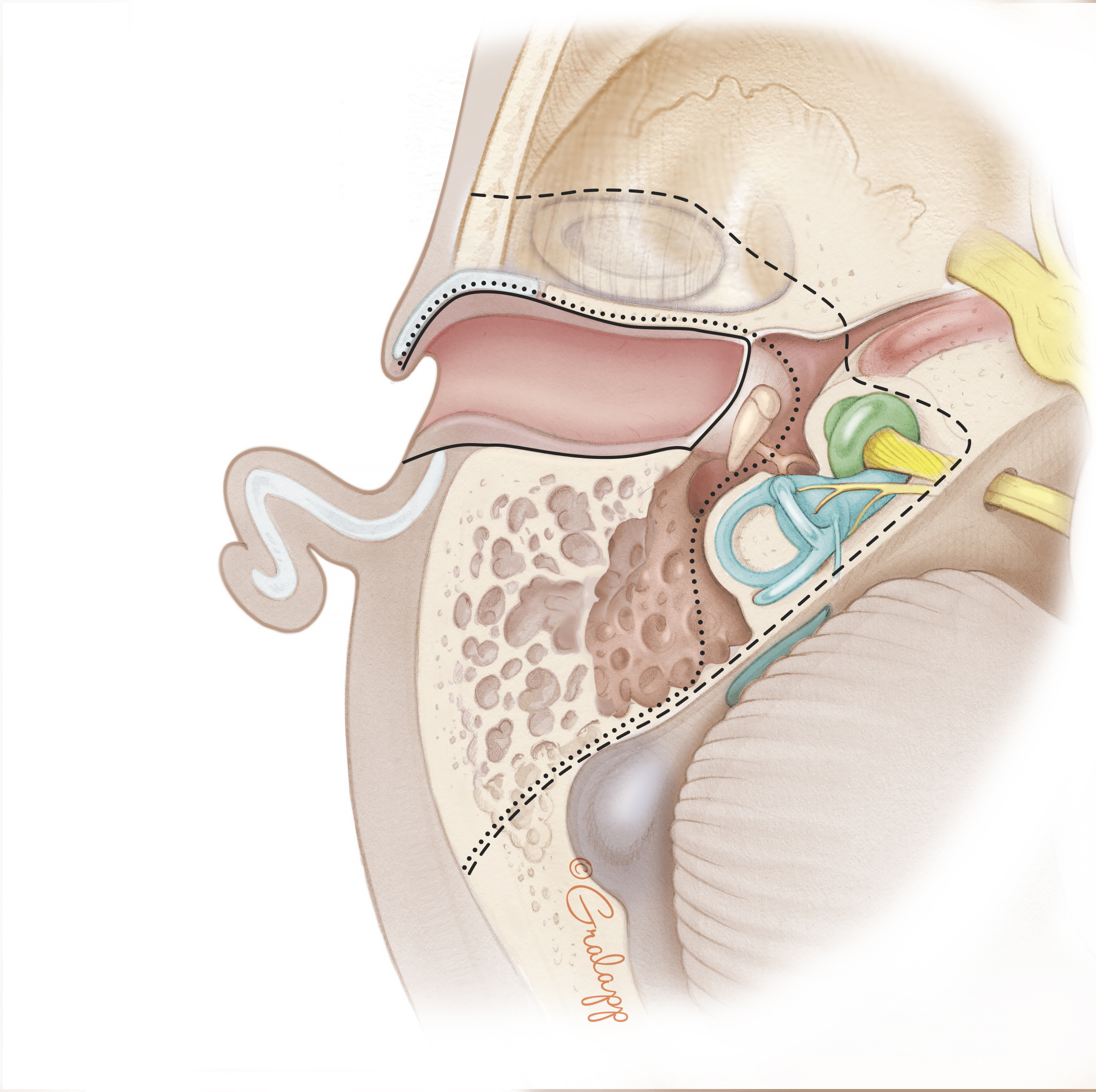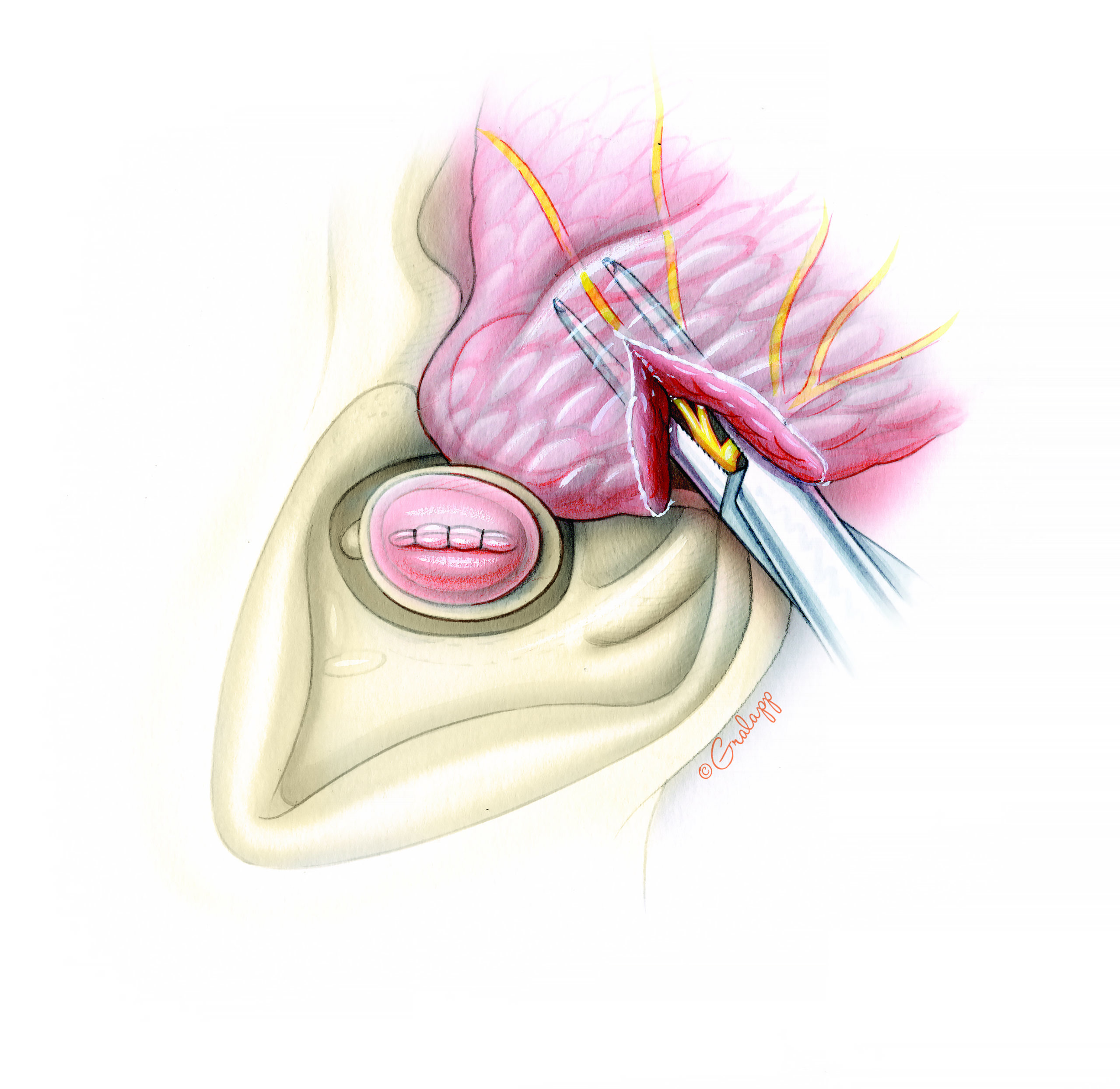 Dr. Jackler and Ms. Gralapp retain copyright for all of their original illustrations which appear in this online atlas. We encourage use of our illustrations for educational purposes, but copyright permission should be sought before publication or commercial use. To request permission for publication or commercial use please contact Christine Gralapp (eyeart@chrisgralapp.com, http